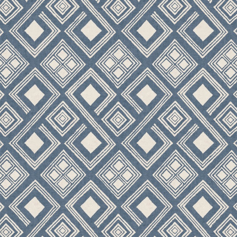 With its hand block printed look reminiscent of mosaic tiles, this diamond geometric wallpaper is available in six colourways and here features in an inky blue.