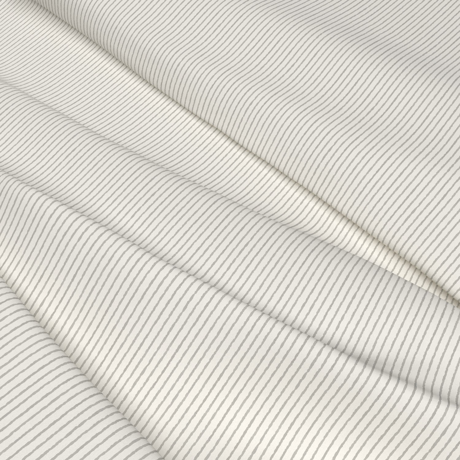 These relaxed pinstripes can be paired with a variety of patterns and plains. Hand drawn in the studio using gouache inks on an ivory ground, this organic design is hugely versatile. Featured here in mid-grey, Cho is printed on responsibly sourced cotton for a soft handle.