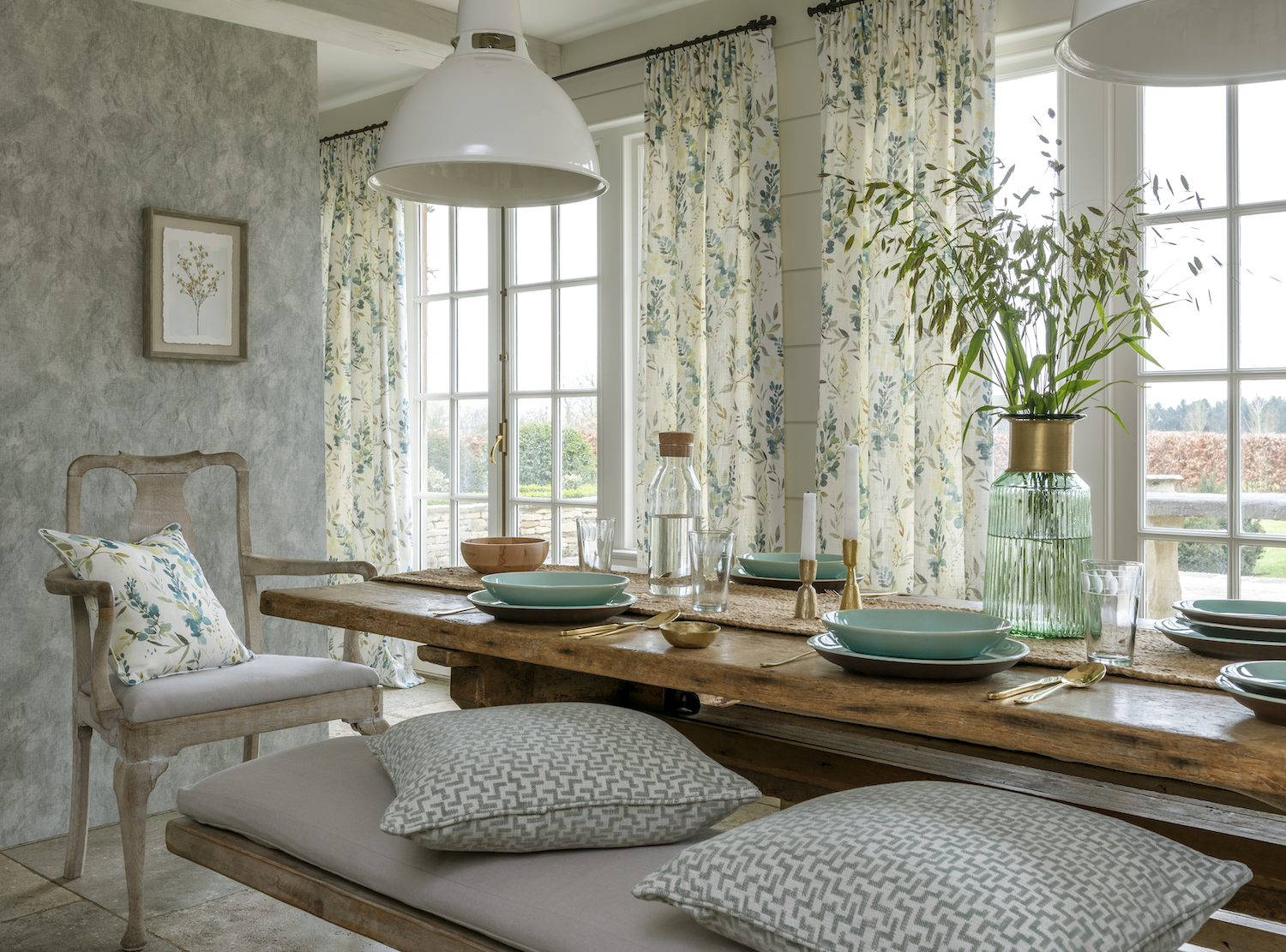 Enhance your dining room with our bespoke made to measure curtains, tailored for sophistication and style. Crafted in the UK, our made to measure options offer versatile heading styles of pencil pleat, pinch pleat, or eyelet, showcasing exceptional craftsmanship. Explore our curated collection of sustainably sourced plain, printed, and woven fabrics, offering a spectrum of colours from serene neutrals and pastels to rich yellows and reds. Elevate your dining experience with bespoke luxury, as you adorn your windows with our exquisite range of dining room made to measure curtains, adding an elegant touch to your dining room decor.
