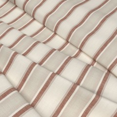 This heavyweight woven stripe has a beautiful linen look with a vintage appearance, created from 100% recycled polyester. It’s natural colours contrast against the design’s highlight stripe, shown here in an earthy red. Pair this fabric with complementary check, Oba.