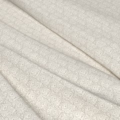 Rows of irregular diamonds layer to create a geometric pattern influenced by its organic origins. Inspired by India’s Ellora Caves, this small-scale design is printed on a soft responsibly sourced cotton fabric. Shown here in a soft grey shade, Ellora comes in nine colourways.