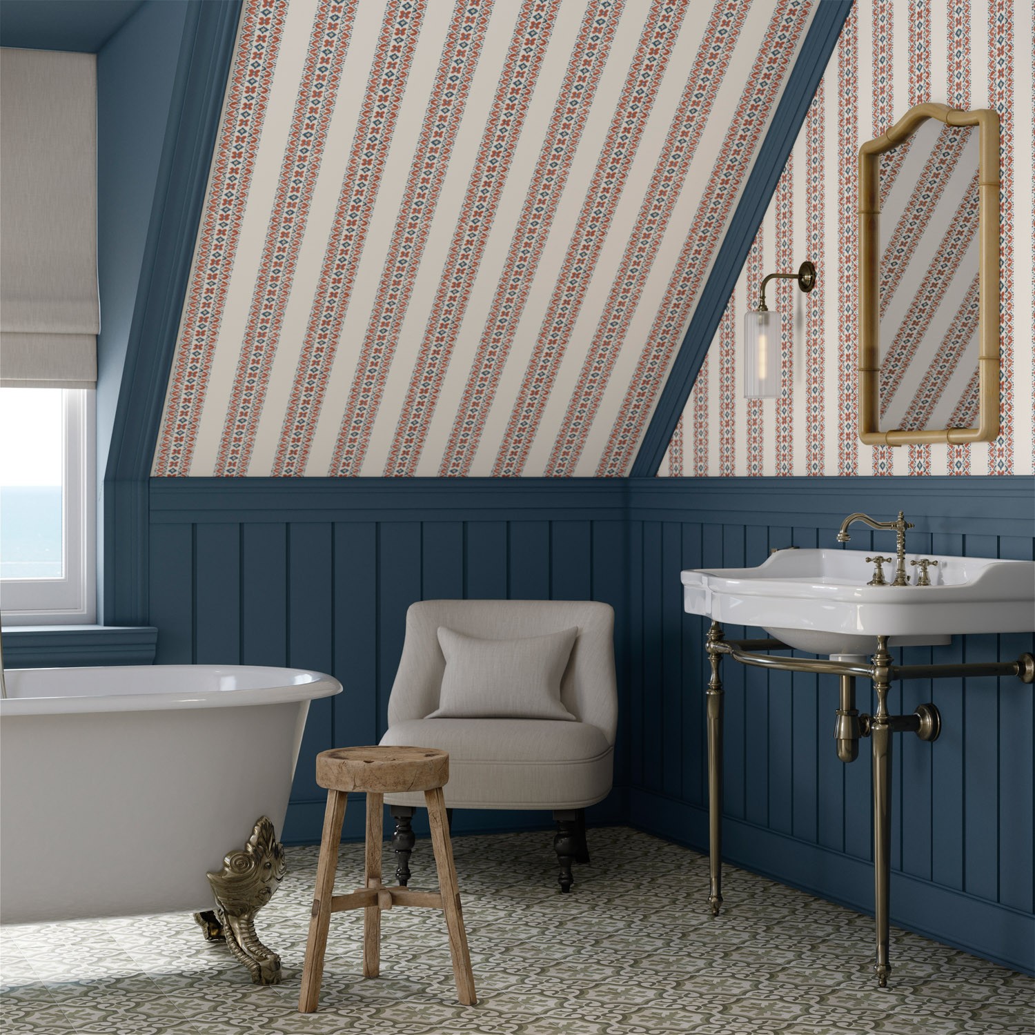 Jalal is a decorative, hand-painted stripe designed in our studio, featuring a bold yet versatile scale perfect for adding character to any space. Inspired by Eastern decorative motifs, this striking design brings a touch of timeless elegance and global influence. Available in seven rich colourways across both fabric and wallpaper, Jalal makes it easy to create a cohesive and captivating interior scheme.