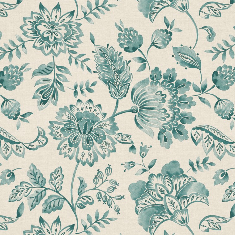 This versatile floral print with a lovely drape makes exquisite curtains and blinds. Decorative and tonal, Indian influences are aplenty across this botanical 100% recycled cotton fabric. Here featured in blue-green and available in four colourways.