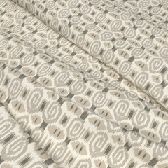 This small-scale geometric ikat with bled ink edging is a wonderfully versatile design. Shown here in taupe grey and printed on responsibly sourced cotton, this contemporary fabric works for curtains, blinds and upholstery.