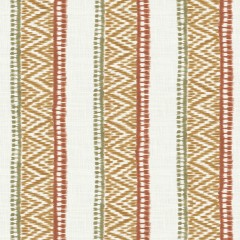 A Persian inspired decorative stripe shown here in earth shades of red, ochre and green. Printed on a beautifully soft 100% organic cotton, this intricate zig zag fabric design was taken from an ancient rug border and has been reworked in five contemporary colourways.