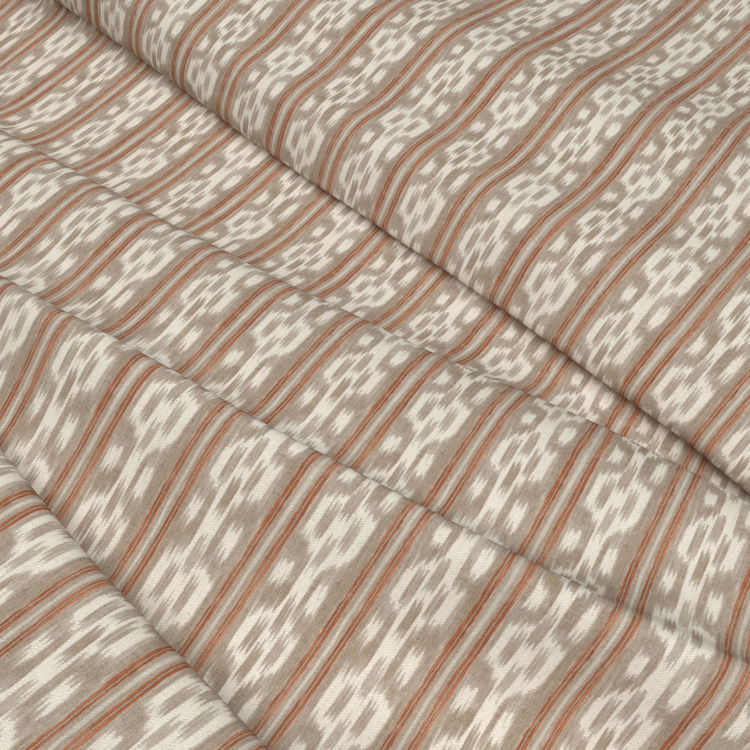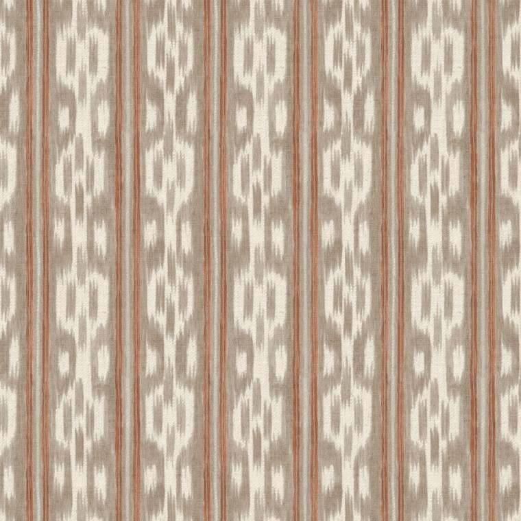 Shadow stripes combined with traditional ikat elements create this unique fabric. Produced on a soft responsibly sourced cotton and available in three colourways, this versatile fabric is here shown in a combination of earthy and neutral tones.
