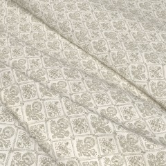 This beautiful hand block print takes its inspiration from pottery tiles of Rajasthan, and is produced on responsibly sourced cotton. Here shown in a soft taupe shade, this versatile fabric is available in four colourways.